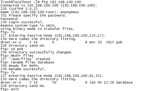 [root@localhost ~]# chown ftp /var/ftp/pub