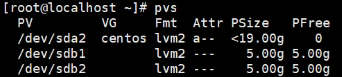 pvs显示有关物理卷的信息(查看 PV 简略信息)