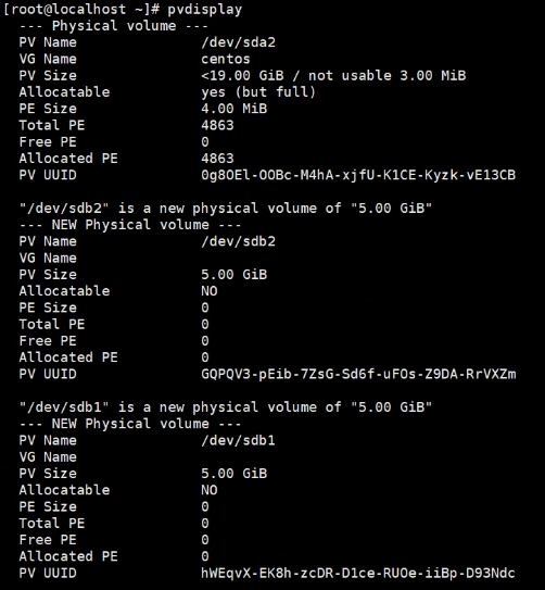 pvdisplay显示物理卷的各种属性(查看 PV 详细信息)