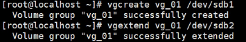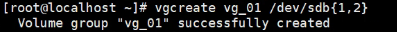 创建卷组vg_01,并把sdb1sdb2两个 pv 加入该卷组