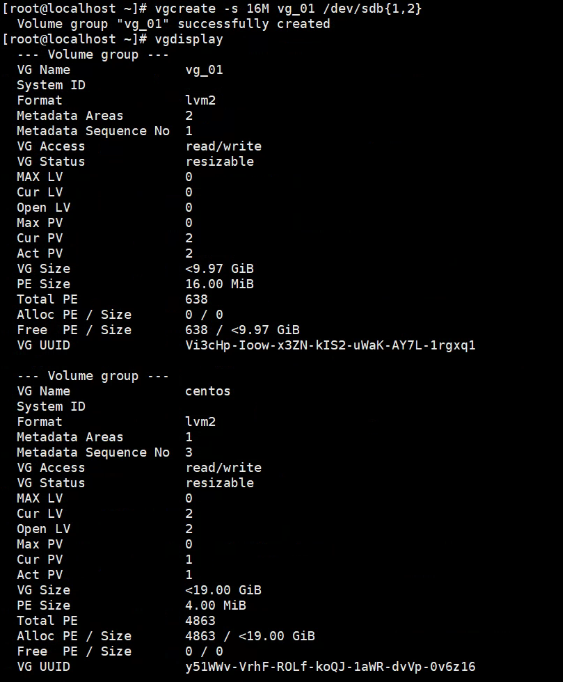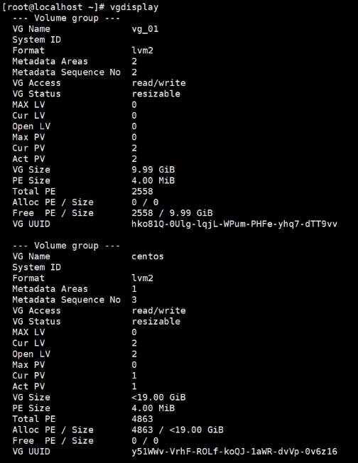 vgdisplay 显示卷组信息(查看 VG 详细信息)
