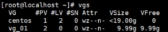 vgs 显示有关卷组的信息(查看 VG 简略信息)