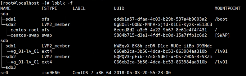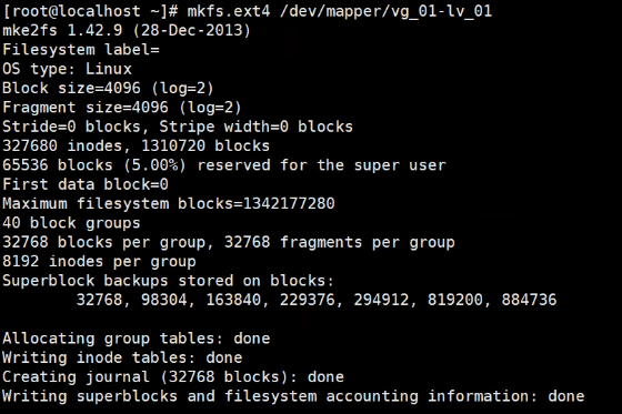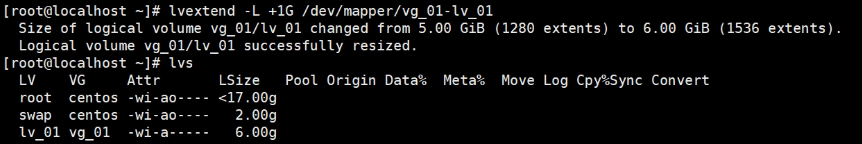 [root@localhost ~]# mount /dev/mapper/vg_01-lv_01 /lv01/
