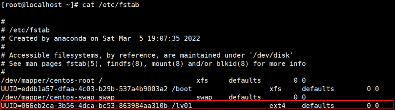 /etc/fstab 文件进行编写(添加 UUID 挂载信息)